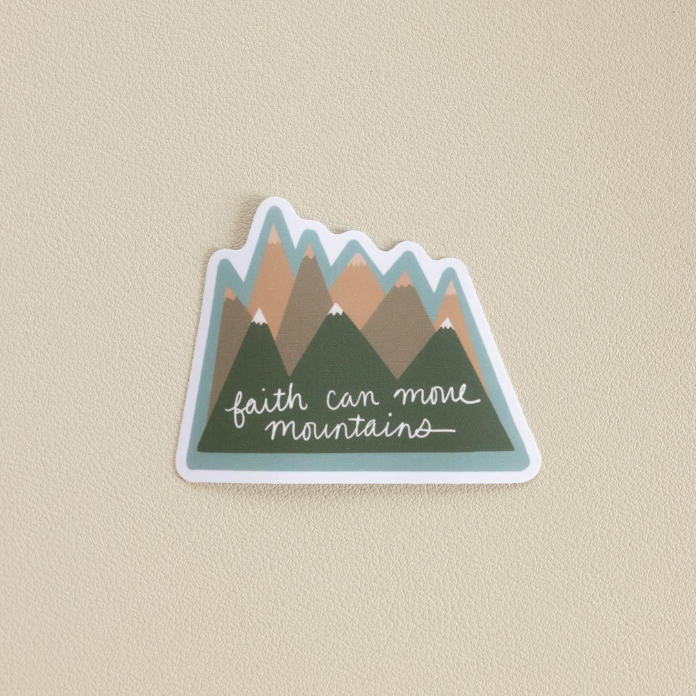 Our Faith Can Move Mountains sticker is a great reminder of courage as we climb through life. Each one measures approximately 2.5" x 2.25" and is made of durable vinyl. It' perfect for laptops, water bottles, to-do boards, lockers, and more. They make great, affordable gifts for youth and ministering friends. Our vinyl stickers are both waterproof and removeable, leaving no sticky residue on important surfaces. Our stickers are not acid-free.
