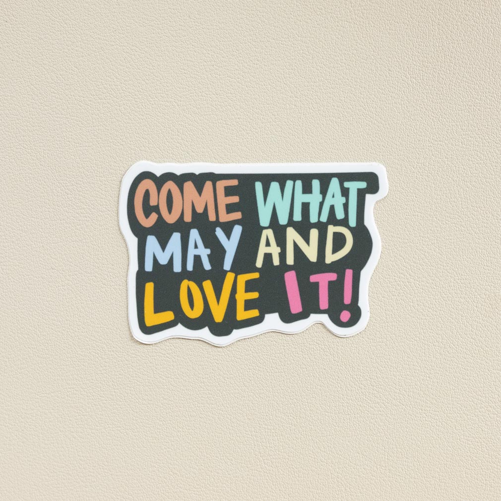 Our Come What May and Love It sticker was inspired by the words of Elder Joseph B. Wirthlin. Each one measures approximately 2.75" x 2" and is made of durable vinyl. It' perfect for laptops, water bottles, to-do boards, lockers, and more. They make great, affordable gifts for youth and ministering friends. Our vinyl stickers are both waterproof and removeable, leaving no sticky residue on important surfaces. Our stickers are not acid-free.