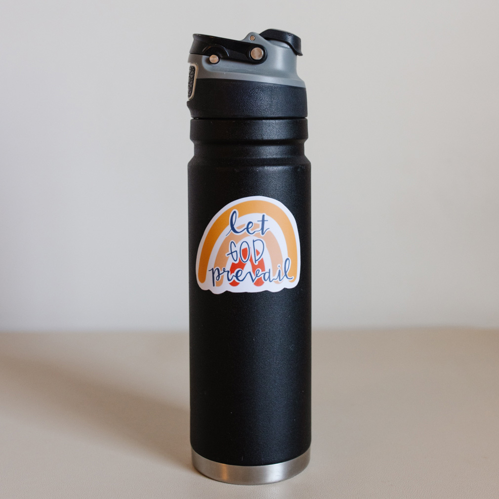 Our Let God Prevail sticker was inspired by the words of President Russell M. Nelson. Each one measures approximately 2.75" x 2" and is made of durable vinyl. It' perfect for laptops, water bottles, to-do boards, lockers, and more. They make great, affordable gifts for youth and ministering friends. Our vinyl stickers are both waterproof and removeable, leaving no sticky residue on important surfaces. Our stickers are not acid-free.