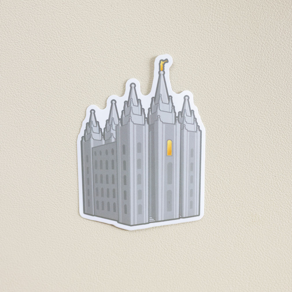 Enjoy the spirit of the temple wherever you go with our durable Salt Lake Temple sticker. Each one measures 2.33" x 3.18" and is made of durable vinyl. It' perfect for laptops, water bottles, to-do boards, lockers, and more. They make great, affordable gifts for youth and ministering friends. Our vinyl stickers are both waterproof and removeable, leaving no sticky residue on important surfaces. Our stickers are not acid-free.