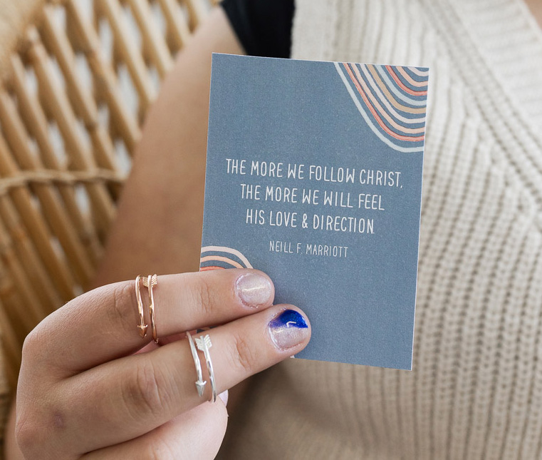 We are on the journey of our lives to follow the path Jesus Christ has set for us. Our arrow ring is a great reminder to keep yourself pointed in the right direction. Each one features a modern arrow design that wraps around your finger. It's adjustable and able to fit any finger size! Choose from silver or rose gold finishes. Your ring will come with a cute gift backer with a quote. It is from Sister Neill F. Marriott and reads, "The more we follow Christ, the more we...
